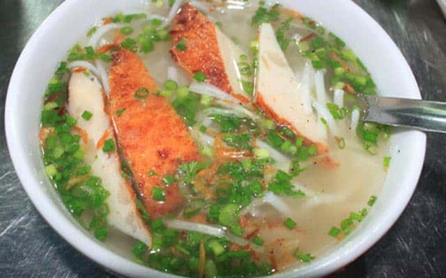 Miếng chả cá là nguyên liệu chính của bánh canh chả cá. Sau khi đã lọc hết thịt, xương cá được dùng để ninh lấy nước, làm nên vị ngọt đặc trưng. Nếu bạn ăn bún cá, trước khi ăn đừng quên cho thêm vào ít hành tây, cà chua và hãy ăn